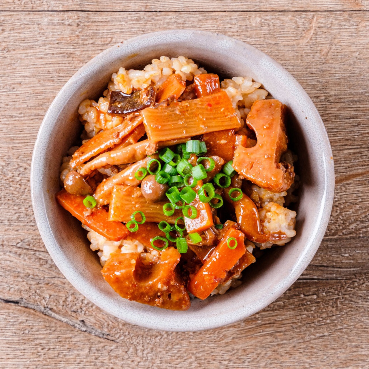 ●味の特長豆板醤の辛さと、花椒(ホワジャオ)のシビれと香りがクセになるシビ辛かけごはんです。中国の四川料理の特徴でもある花椒を効かせ、花椒の痺れと豆板醤の辛味を活かす絶妙な配合でより本格的な味わいに。 また、香味野菜とごま油、甜麺醤でコクを出し、オイスターエキスで深みを出しています。ごろごろと食感の違う野菜をあわせ、満足感のある“野菜をたべる”麻辣丼に。食べ応えのある最後まで飽きずに楽しめるシビ辛かけごはんです。万能ねぎや白髪ねぎをトッピングすると、より本格的な味わいに。