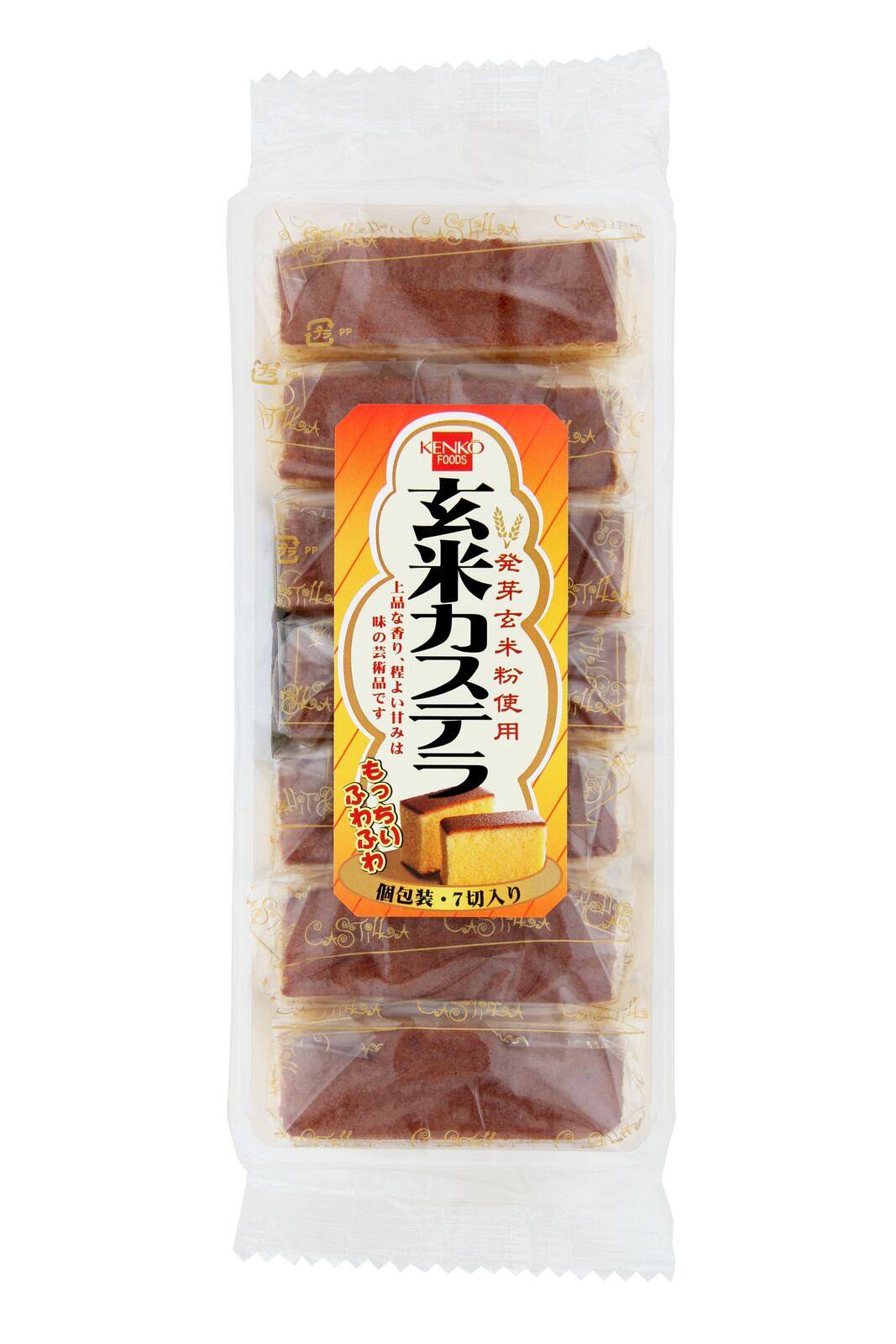 契約養鶏場の卵に北海道産小麦とてんさい糖など厳選素材に発芽玄米粉を加え焼き上げました。全て国産素材を使用しております。ふっくらしっとり焼き上げたカステラは、もちもちとした食感と程よい甘みが特徴です。食べやすいサイズにカットし、ひとつひとつ個包装してありますので、手軽にお召し上がりいただけます。