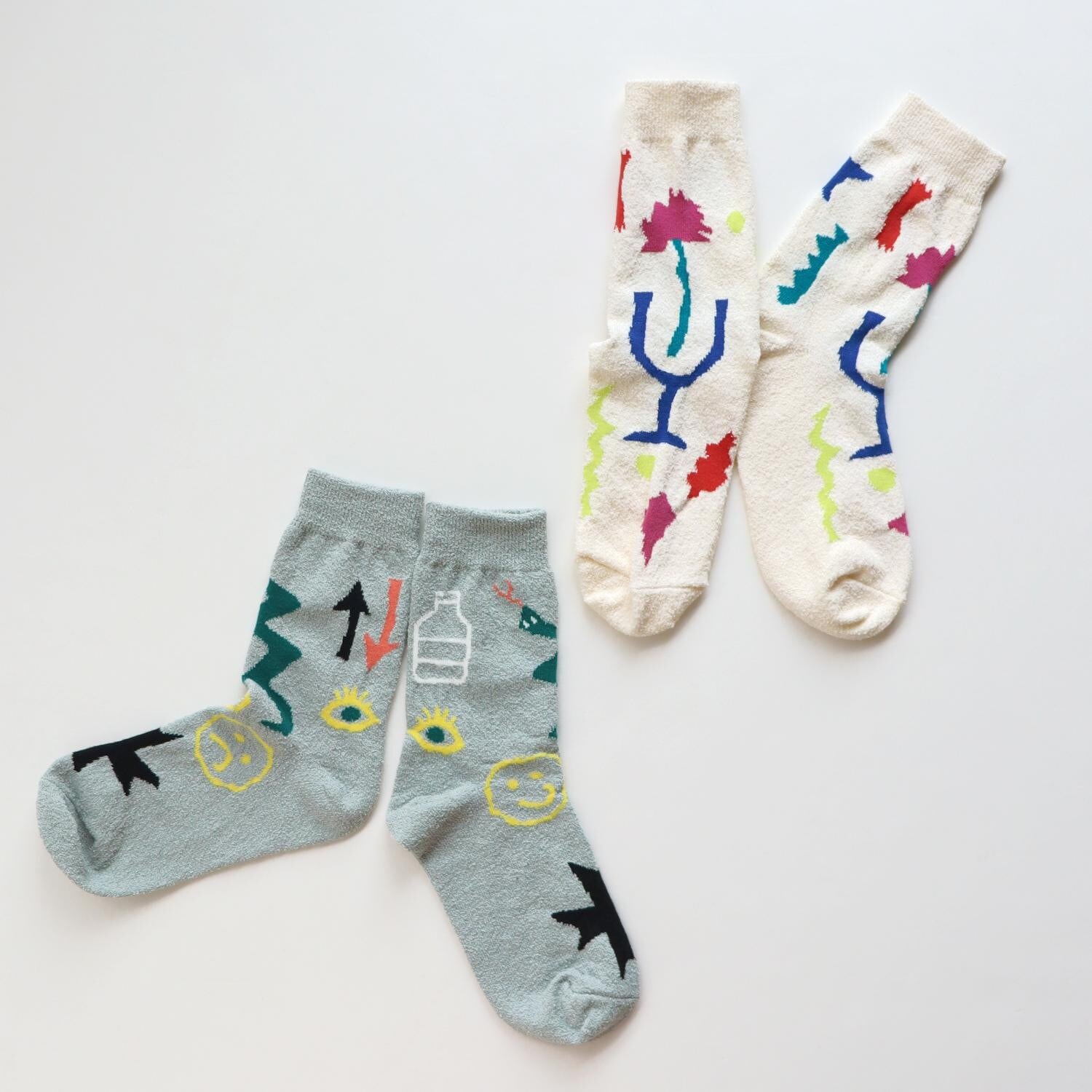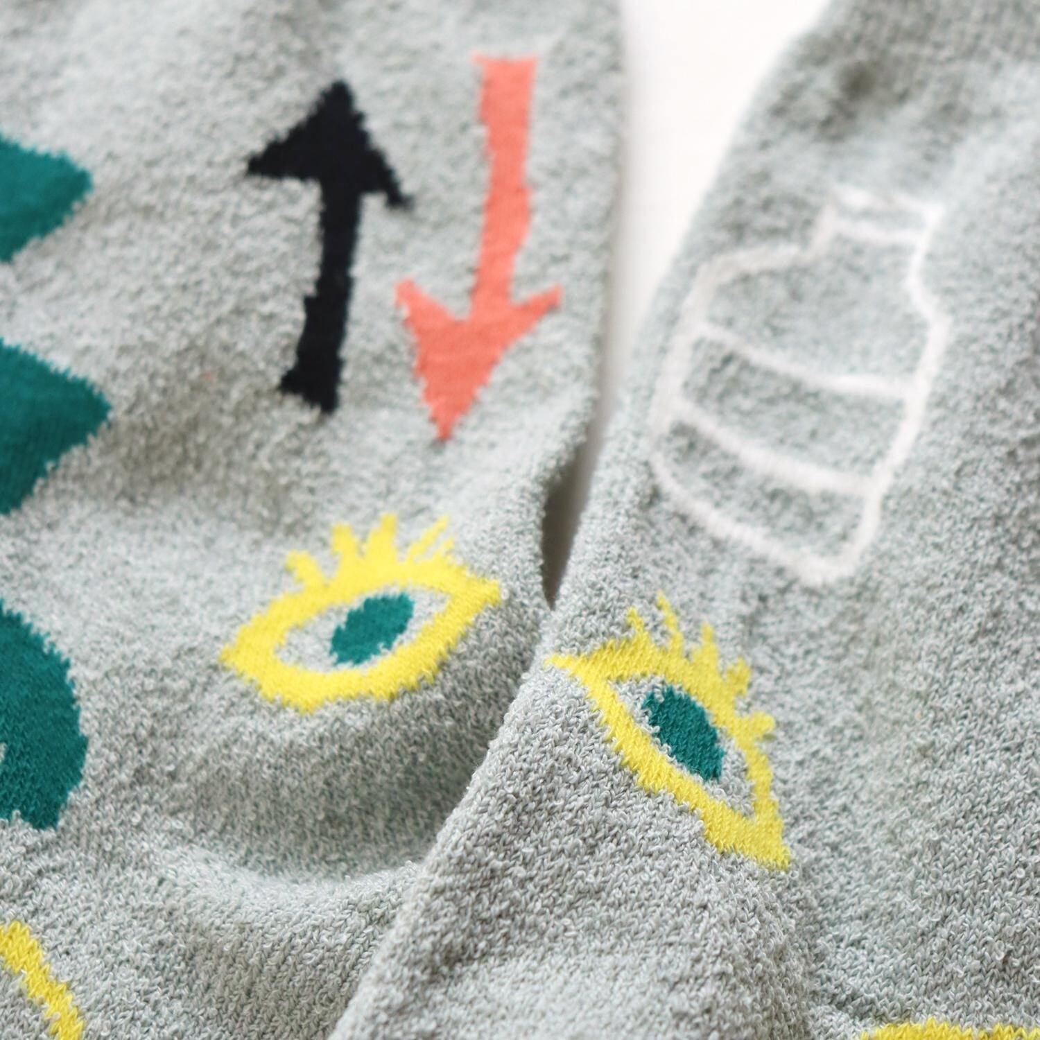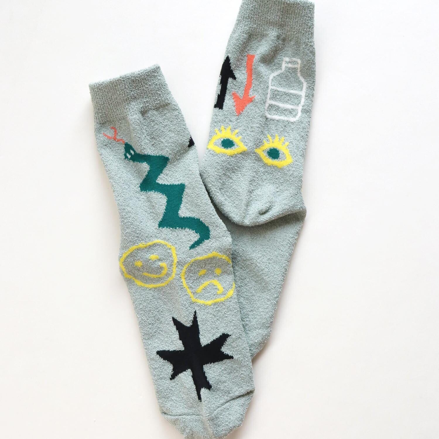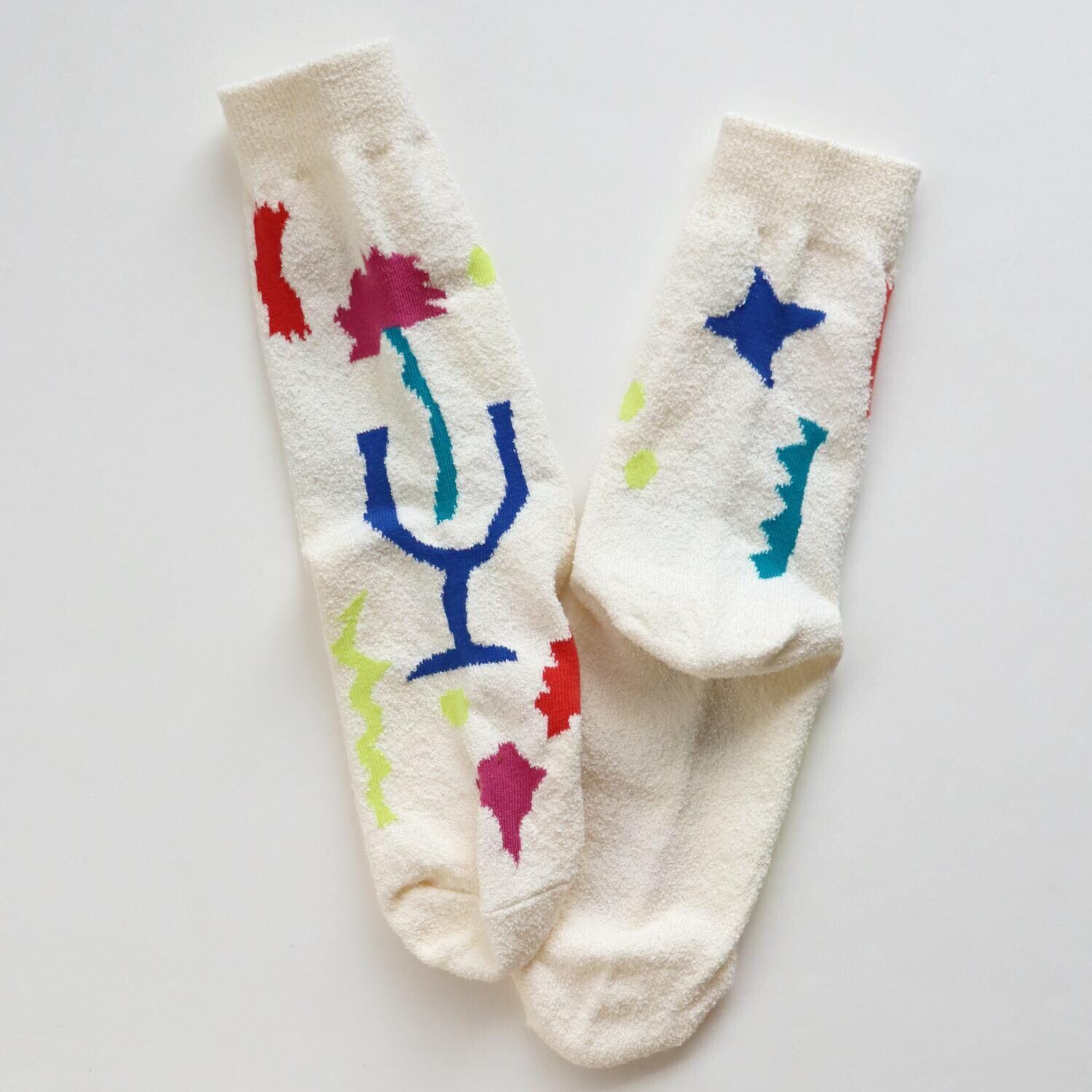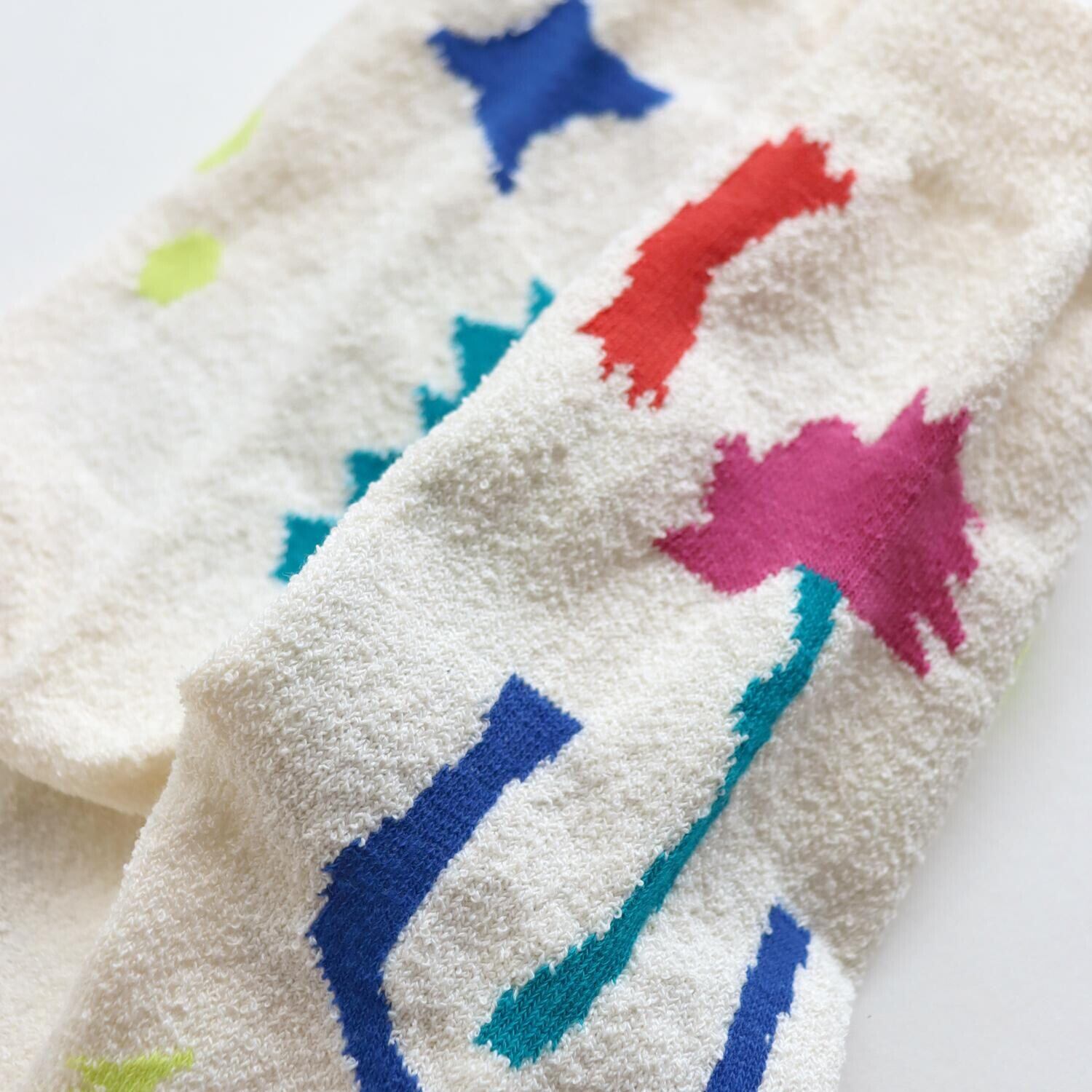 くるくるくせ毛のような糸、ブークレ糸を使ったソックスでシャリ感があります。