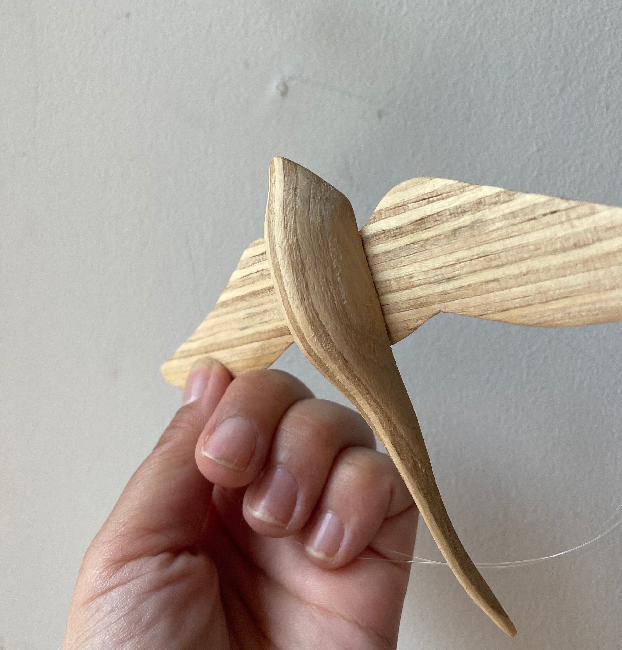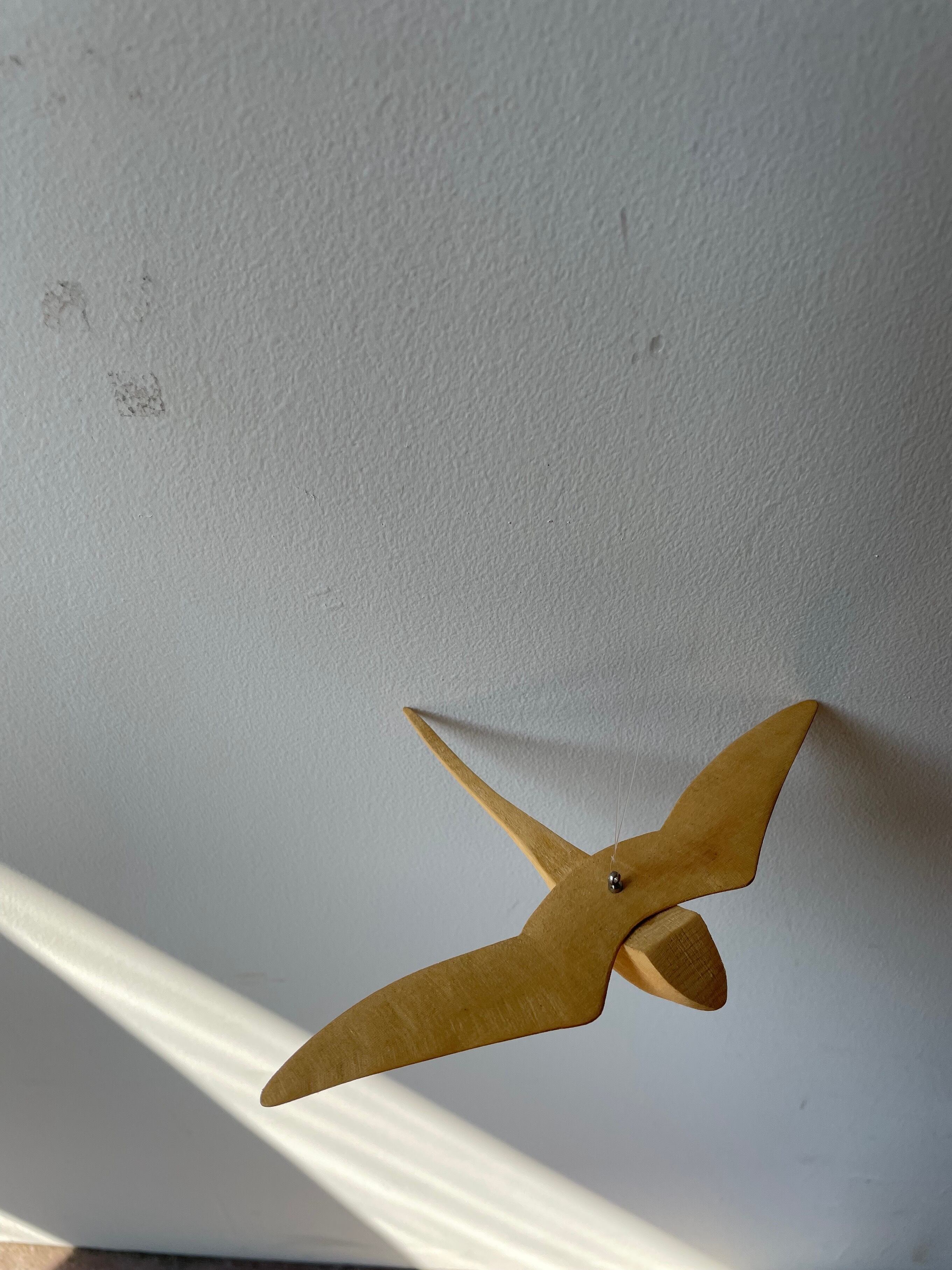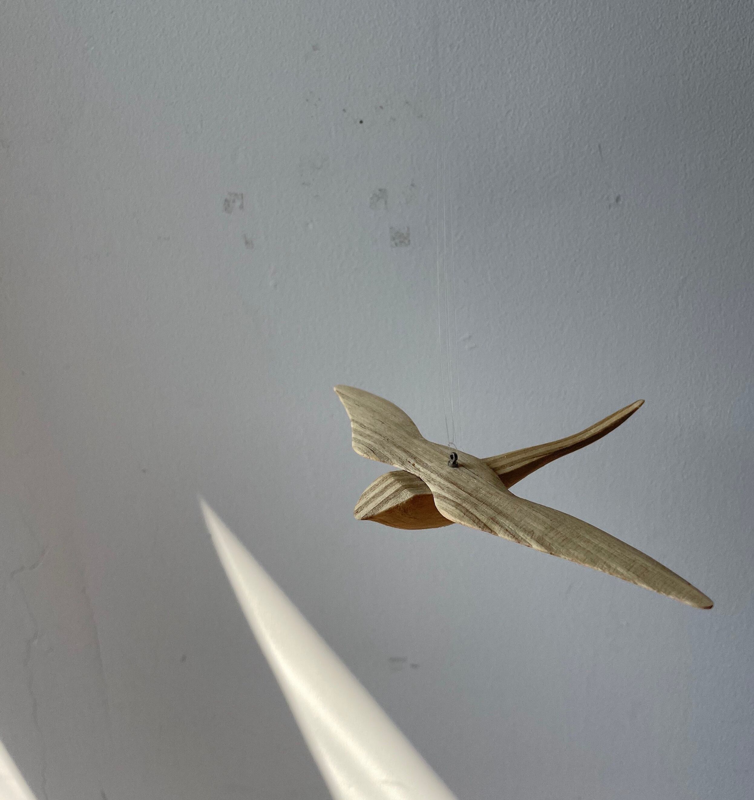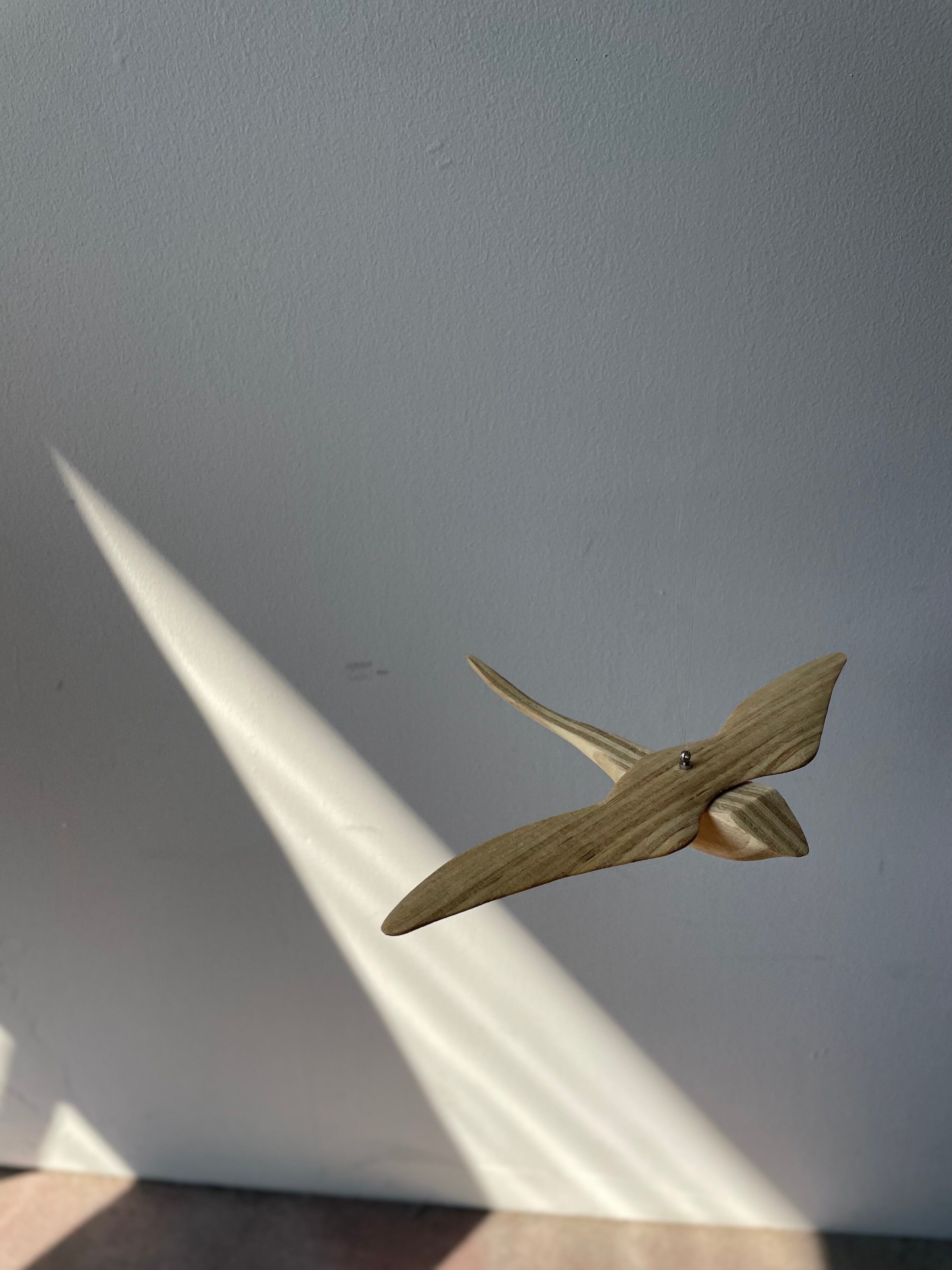 気持ちよさそうに空間に漂う木の鳥。